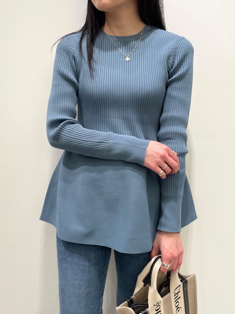 ふんわり立体的なペプラムシルエットが一枚で着映えするペプラムニット。ポリエステル100%で暖かくなってもお召しいただけるさらっとしたお素材です。リブでぴったりしているように見えますが、しっかりとした生地で肉感を拾いすぎないので、タイトめなシルエットが苦手な方やウエスト回りをカバーしたい方にもおすすめです。