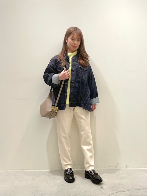 レモンイエローはデニムと相性抜群。デニムジャケットのインナーに合わせても存在感があります。ハイネックが苦手な方は襟を内側に折り込んであげると着やすいですよ。