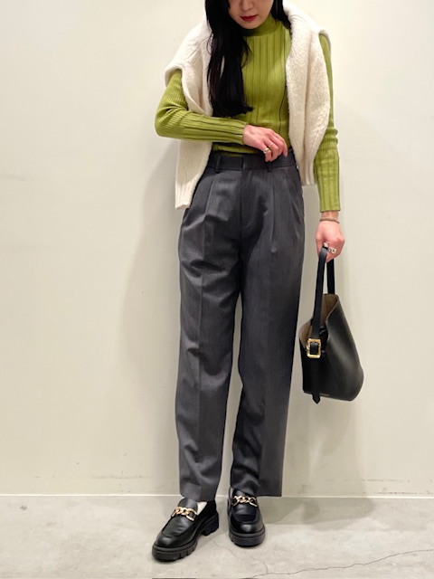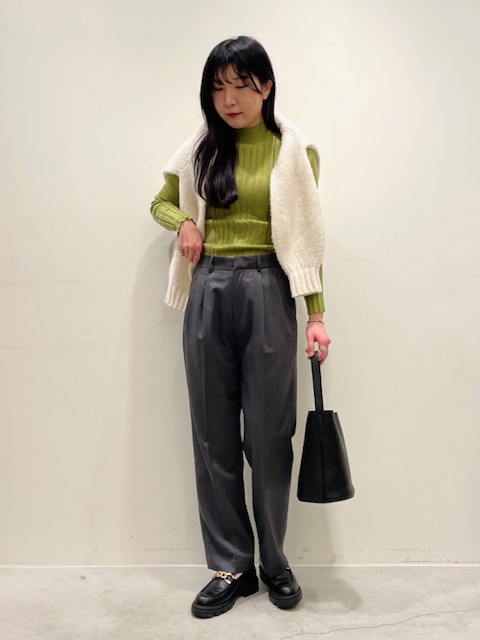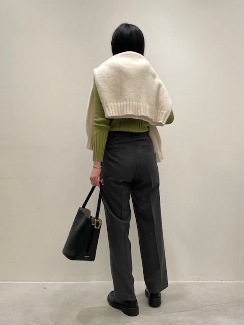 ピスタチオカラーとチャコールの組み合わせが一押し。シンプルなコーディネートこそ素材の良さが活きます。