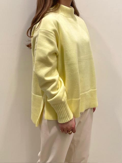なレモンイエローが映えるニット。スウェット感覚で気軽に着られるニットがセールでゲットできるなんて…!春も使える色味を選べば長くお召しいただけますよ。手洗い可でホームケアできるお素材なのもうれしいポイントです。