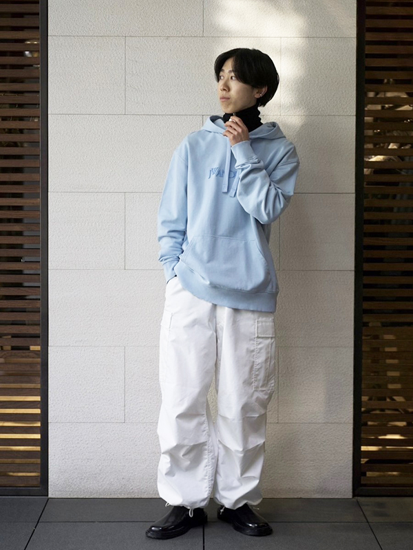 今回のように少しモードな着こなしでも、デニムやスウェットでカジュアルスタイルでも良いと思います。