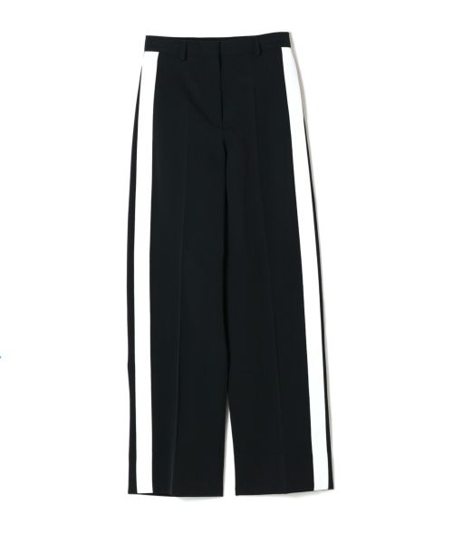 STELLA McCARTNEY(ステラ・マッカートニー)のパンツ。2025年スプリングコレクションのアイテムとして登場。英国の伝統あるサヴィル ロウのテーラリング技術を基盤としたデザインは、洗練されたモダンなスタイルを提案します。両サイドに施されたタキシードストライプがシックでエレガントな印象を与えます。ローライズ仕様でありながら、ストレートレッグのシルエットが脚を美しく見せるよう計算されています。