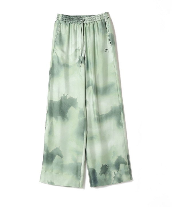 STELLA McCARTNEY(ステラ マッカートニー)のパンツ。ステラのアーカイブとデザインDNAに根ざした馬のモチーフを手書きデザインで再構築した一着です。ゆったりとしたワイドレッグシルエット。ウエスト部分に伸縮性のあるドローストリングを備えています。