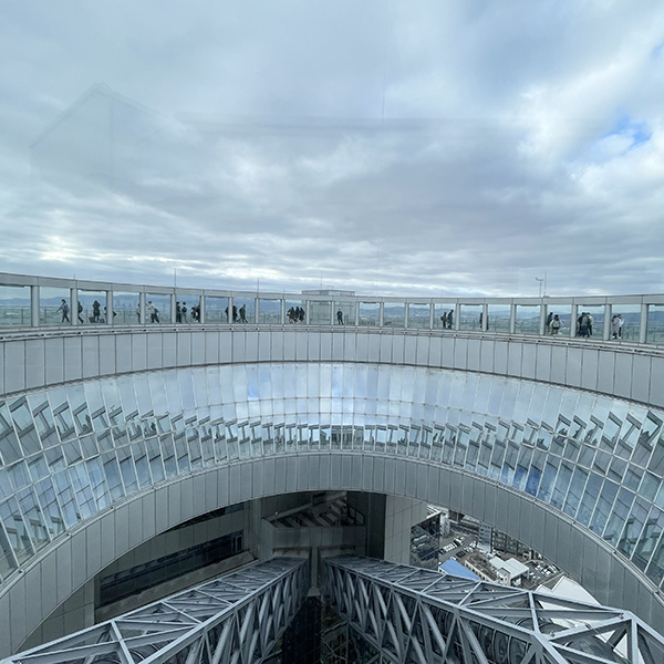 まず、梅田スカイビルの空中庭園展望台に行ってきました。大阪に来るたびにいつか行ってみたいと思っていましたが、今回が初めてでした。
