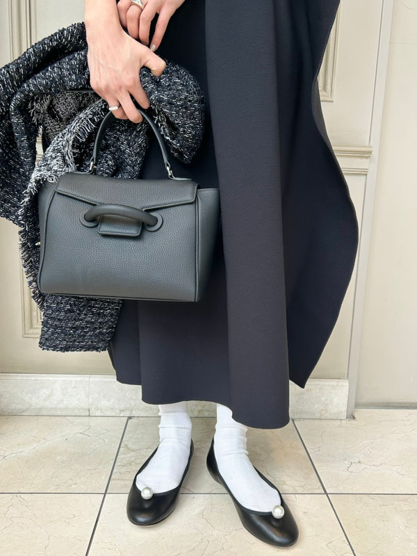 パールのパンプスはピッピシックの新作で、かわいらしいデザインが目を惹きます。