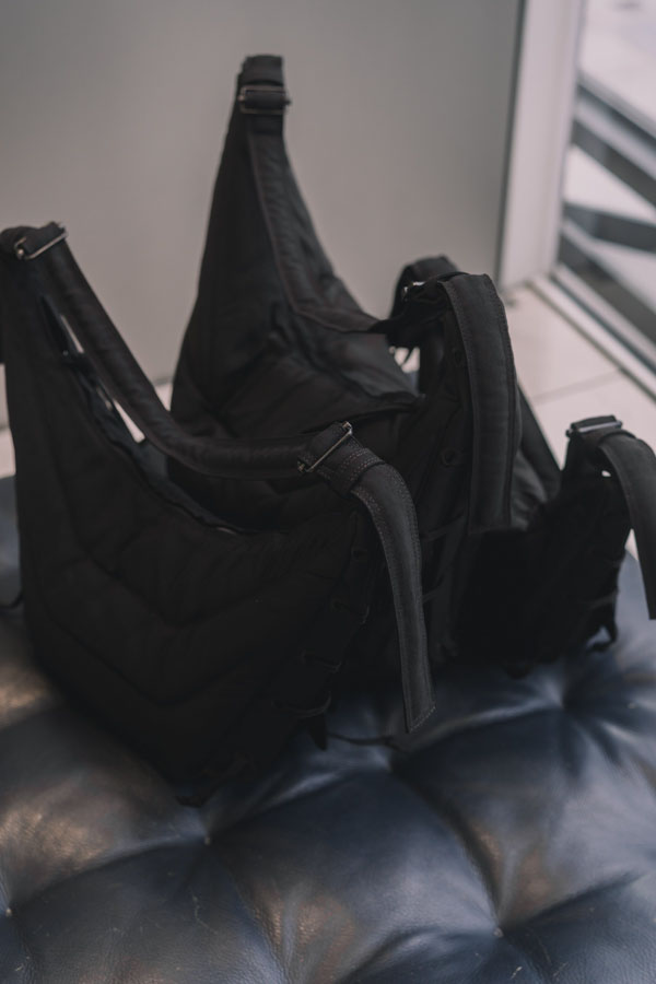 バッグは、LARGEサイズでありながら綺麗に体に沿い、コンパクトに収まります。人間が背負ったときに心地良く感じ、美しく見えるようこだわり抜いているからこその仕上がりだと思います。