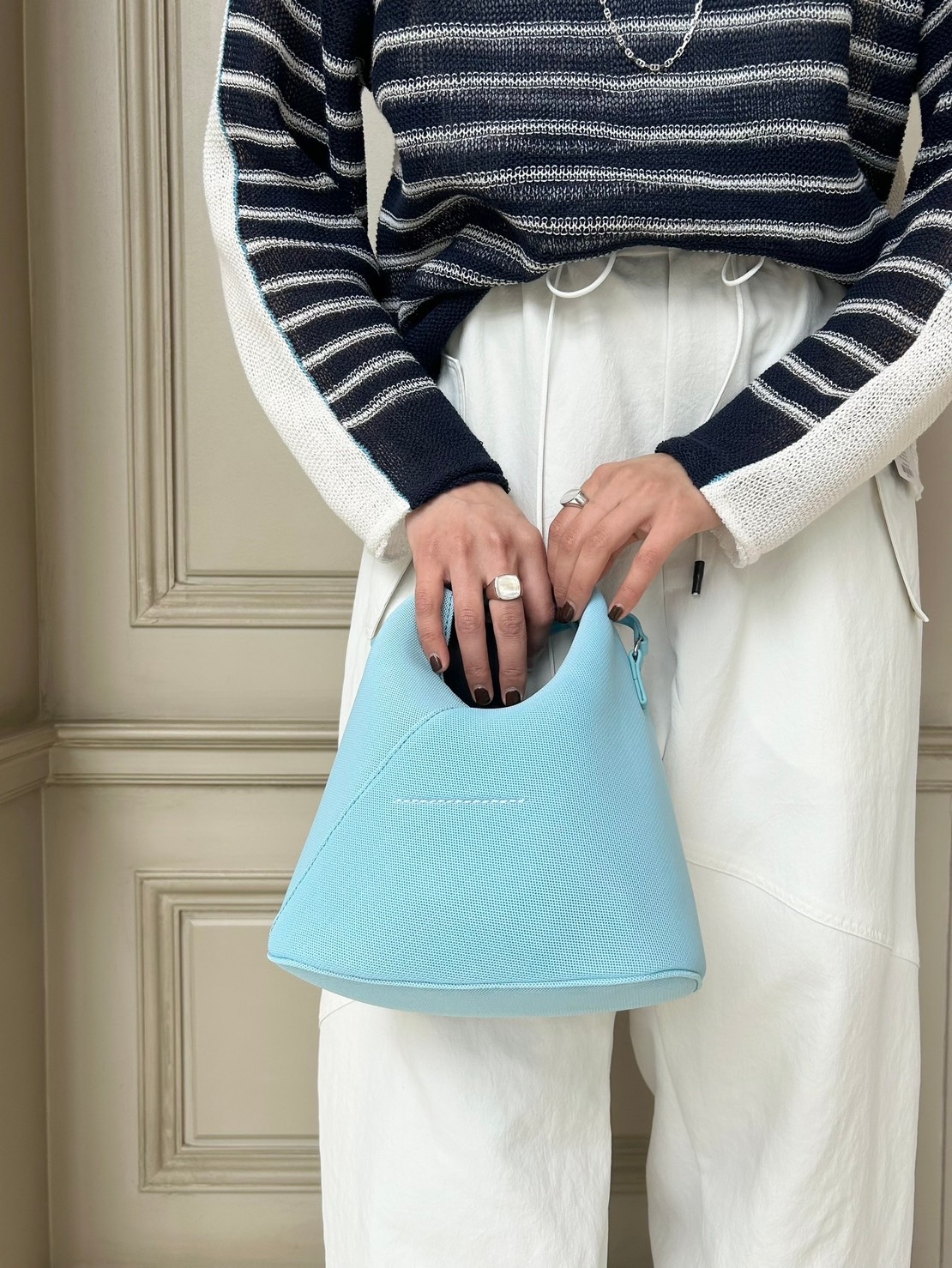 その中でもこのライトブルーのカラーはコーディネートのアクセントになってくれて、一気に春らしさを感じられる、まさに今持つのにピッタリのアイテムです。