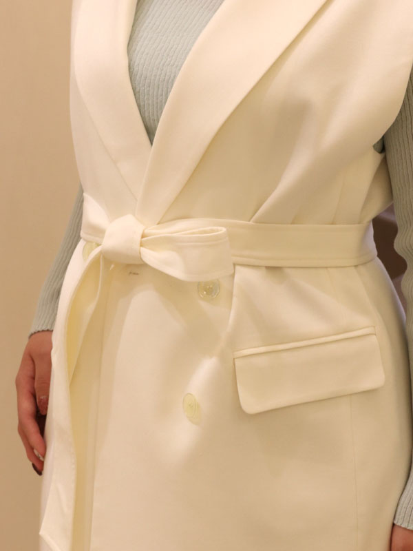 ここ最近のパリゴは、セットアップでお使いいただけるジレ+パンツのセットが出ておりますが、今回出たセットアップは、生地は程よく肉厚で上品なとろみもあるため、オケージョンや学校行事などでも着用いただけますよ。