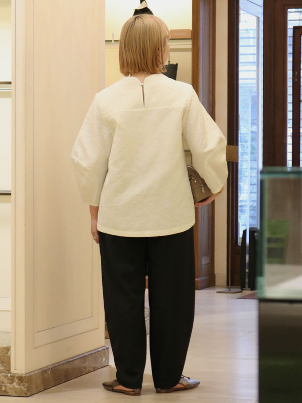 華やかなジャガード+上品な艶感は大人ファッションにもってこいの一枚です。