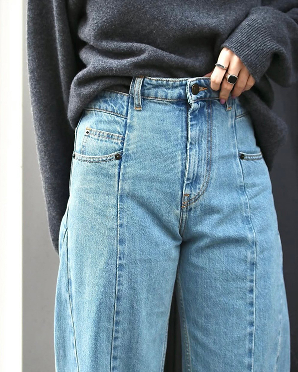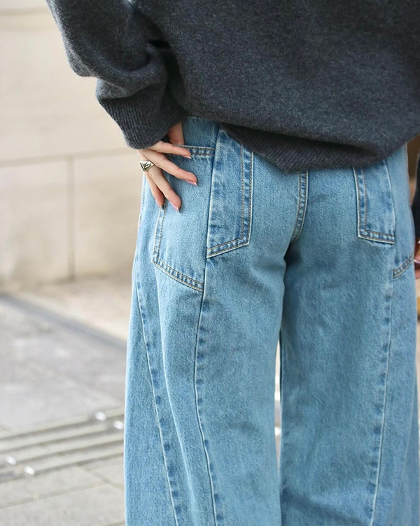 カットアウトウエストバンドが採用されたデニムパンツです。