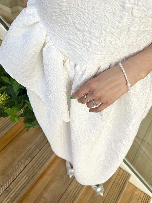 Ditteドレスは、ブランドのシグネチャーであるグラッポロ・マテラッセ素材を使用したドレス。アシンメトリーなラッフルが華やかさをプラスしてくれます。