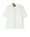 インナーのクリップネックカットソーもすごく新鮮味があります。遠目から見るとエスニックなテイストに見えるとことが面白いですね。