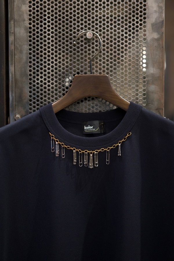 インナーのスカーフ付きカットソーも「kolor」の新作でオシャレな雰囲気をプラスしてくれます。