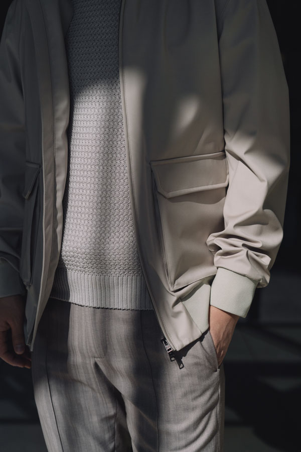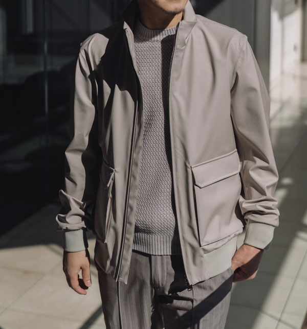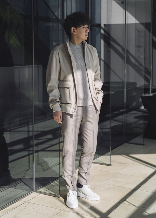 着用したのは「HERNO(ヘルノ)」のヴァルスター型ジャケットです。