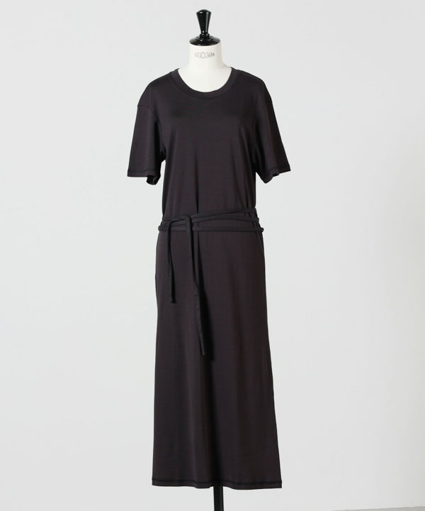 LEMAIRE(ルメール)のワンピース。 シンプルで洗練された佇まいが魅力のTシャツドレス。ゆったりとしたリラックスフィットのシルエットに、足首まで届くロング丈が上品な雰囲気を演出します。オープンなラウンドネックと肩の丸みを帯びたデザインが、柔らかさと抜け感をプラス。取り外し可能な共布のベルトは、ウエストを何重にも巻いてアレンジが可能で、気分やシーンに合わせたスタイリングを楽しめます。袖丈は肘にかかる絶妙な長さで、一枚で着てもこなれた印象に仕上がるアイテムです。
