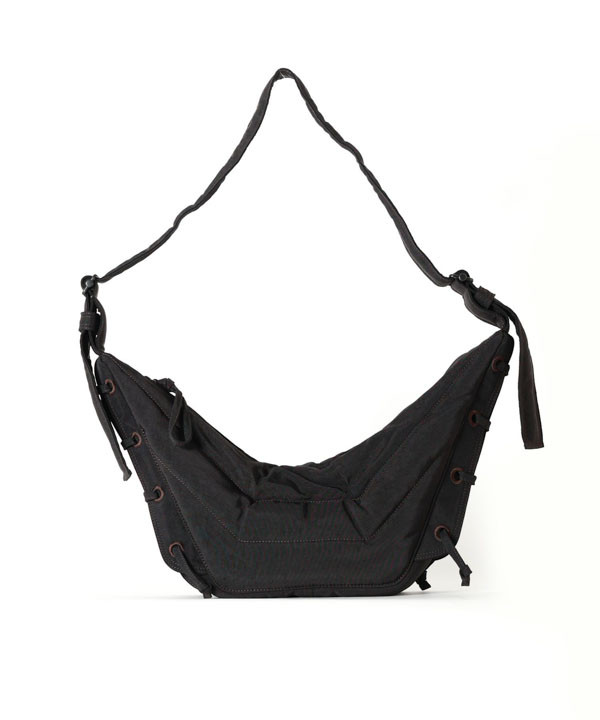 LEMAIRE(ルメール)のアイコンバッグ「クロワッサン」。ミディアム クロワッサンは、パリッとした質感と光沢のある仕上げのコーティング コットン製で、GOT 認証を取得しています。独特の表面が手触りの良さを演出し、耐久性にも貢献しています。同名のペストリーの形にインスピレーションを得たこのビーガン バッグは、トップステッチのカットアウトを組み合わせて、スタイルと機能性を融合しています。