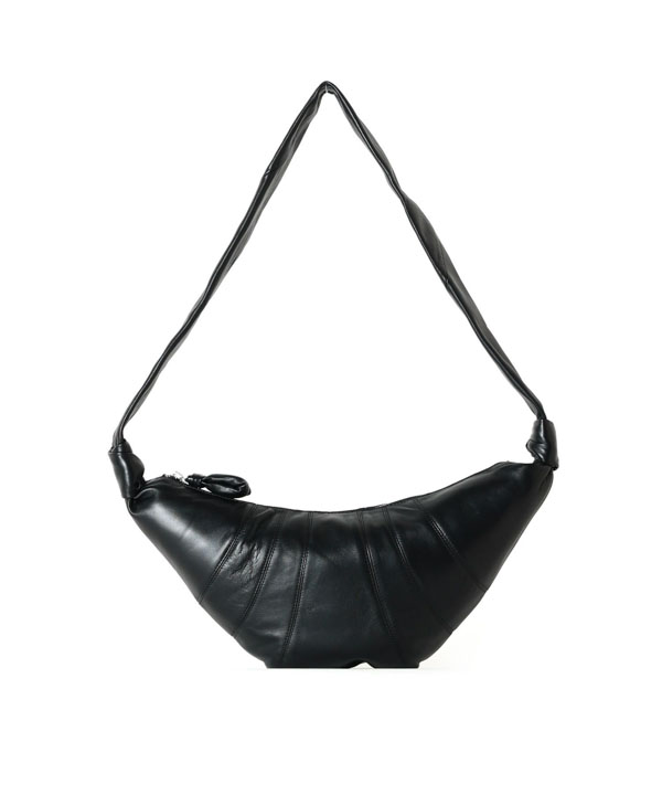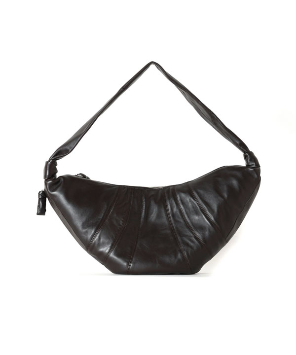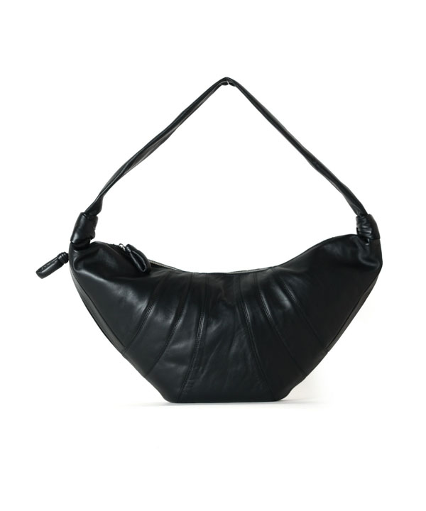 LEMAIRE(ルメール)のアイコンバッグ「クロワッサン」。シリーズの中でも最大のサイズです。ラージ クロワッサンは、しなやかでありながら耐久性のある生地であるソフト ナッパ レザーで作られています。滑らかな表面が手触りの要素を加え、バッグの曲線の耐久性に貢献しています。クロワッサン ペストリーの形状からインスピレーションを得たデザインは、トップステッチのカットアウトの組み合わせによって実現され、スタイルと機能性が融合しています。