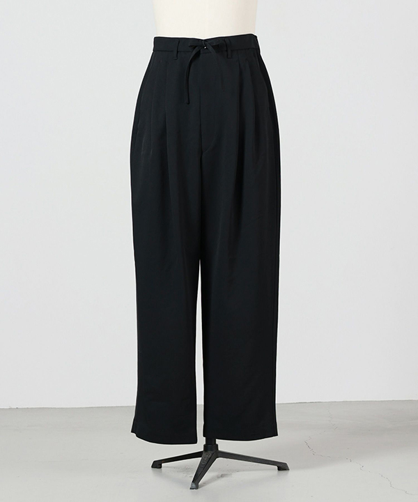 LEMAIRE(ルメール)のパンツ。 リラックスしたフィット感と緩やかなカーブを描くサイドシームが、流れるようなシルエットを演出します。 ウエストは共布のドローストリング仕様でフィット感を自在に調節でき、前後に配された4本のプリーツが立体感と動きをプラス。 裾にはボタンアジャスターを備え、シルエットをお好みで調整可能です。 カジュアルにもモードにもマッチする洗練されたデザインで、日常使いから特別なシーンまで幅広く活躍します。