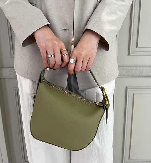 ジャケットのかっちりとした雰囲気とラフなワイドパンツのスタイルのバランスを取ってくれる最高の1品です。手が大きく、丸みがあり肉感のある私でも指が長く見える大きすぎないサイズ感がお気に入りポイントです。