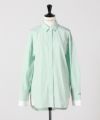 春らしいミントグリーンのストライプ柄シャツ。