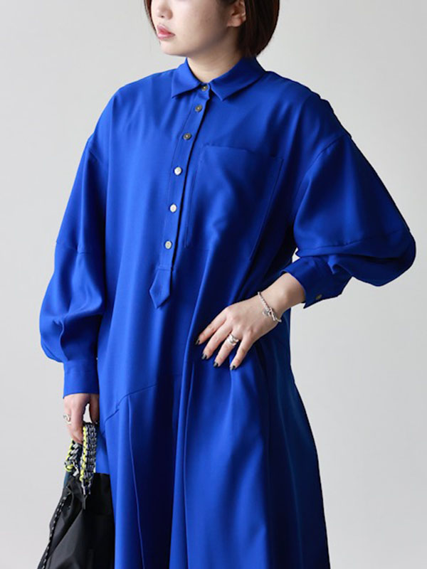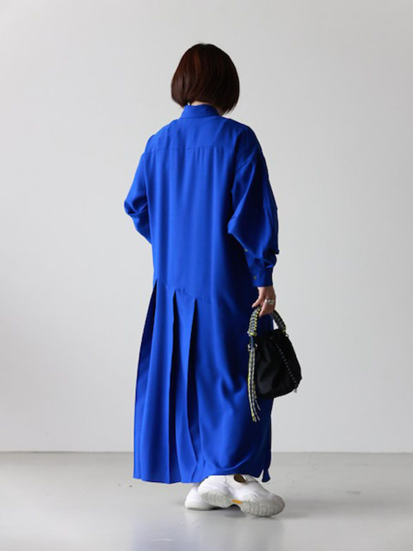 オススメポイントは、切り替えのプリーツが小柄な方でもバランスを良く見せてくれる着丈感です。発色の良いブルーに気分が上がりますね☺