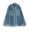 シアー感は透けすぎない素材感。光沢感がありレザーっぽくも見えて、シャツアイテムながらエレガントさも感じさせます。