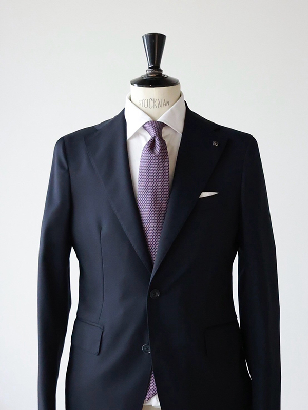 ②ネイビースーツ×ホワイトシャツ×パープル