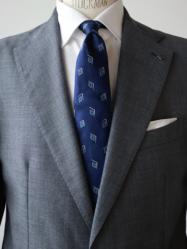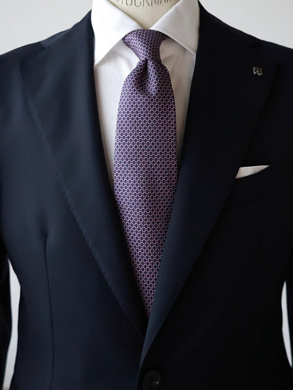 こちらのネクタイは菱形の端にホワイトラインが入っているので、ホワイトのシャツにも合います。