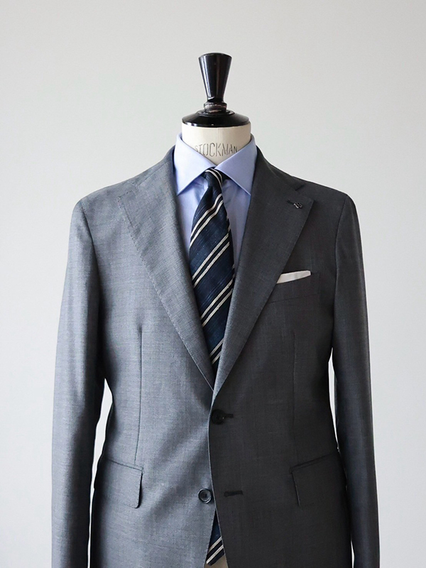 素材感に関しては、また別の時に書きたいと思いますが、メインのジャケットの生地に近い素材感、光沢感を合わせた方が全体的に纏まります。