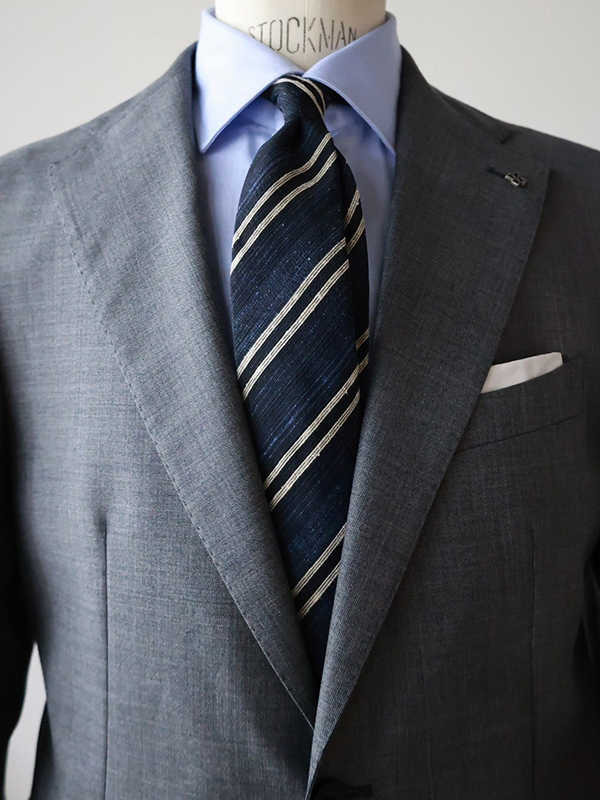 選んだネクタイは柄というより、色々な糸を混ぜて織っているタイなのでほぼ無地だと捉えて頂いていいと思います。