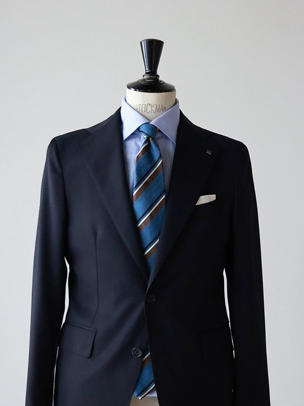 ①ネイビースーツ×ホワイトシャツ×ブルー