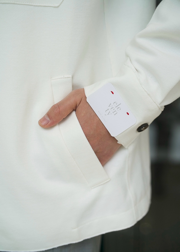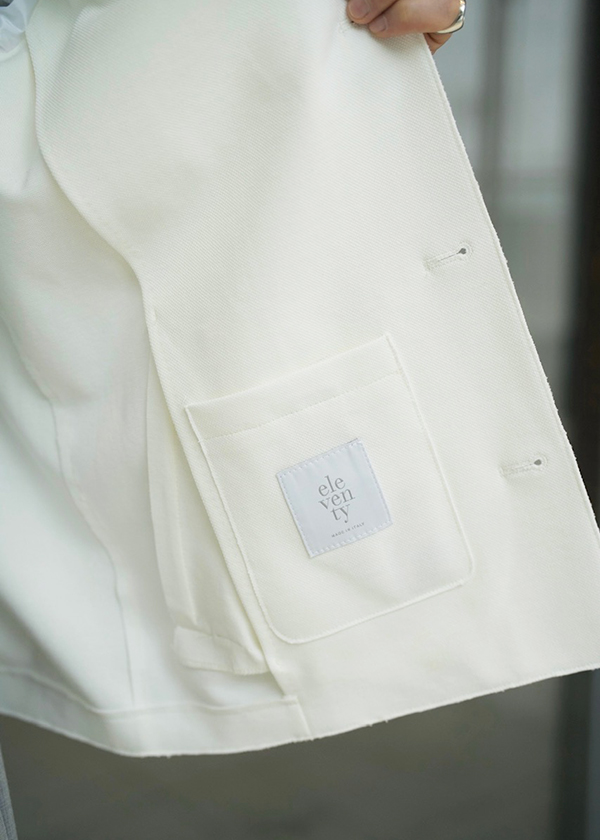 こちらはELEVENTY(イレブンティ)のカバーオールジャケット。生地が裁ち切りと言って裁断したところの切り口をあえて残してデザインとして使用することでカジュアルな印象を与えます。