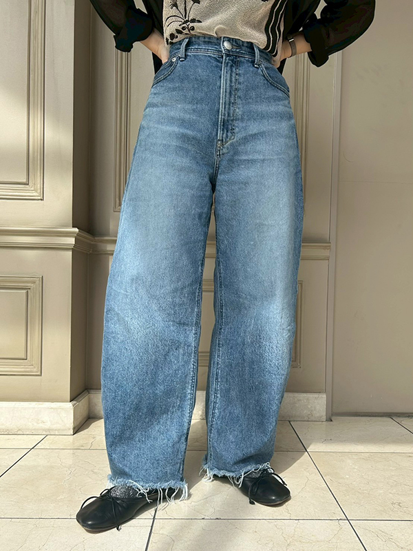 春になるとデニムが着たくなる私は、カーブデザインでトレンド感満載のYANUK(ヤヌーク)の「LAURA」を主役にしたコーディネート。