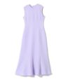発色のいい「Shirring Jersey Jacquard Sleeveless Dress」のラベンダーカラーのワンピースに、カラーをリンクさせたマメの「Drop Jacquard Knitted Cardigan」を合わせました。