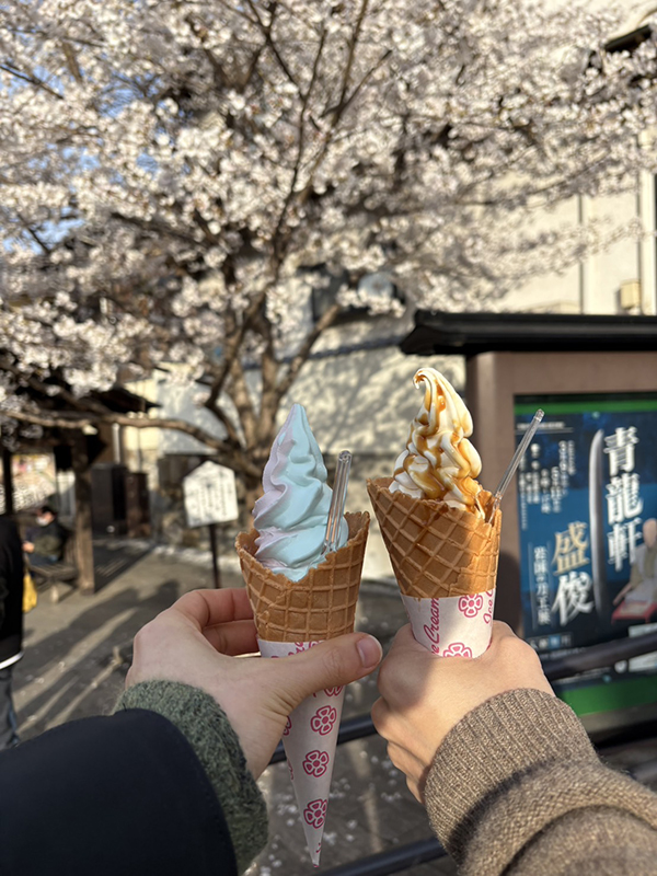 その後、錦帯橋名物の日本一メニューが多いアイスクリーム屋さんにも行きました!