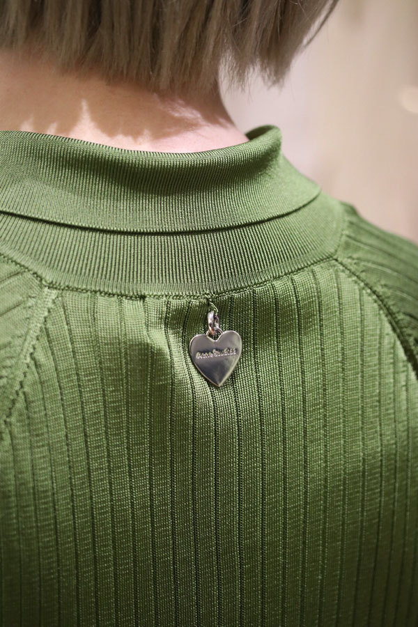 背面にはブランドロゴが刻印されたハートのシルバーチャームが♡