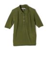 ニットのポロシャツは光沢感のあるシルク素材できれいめな印象です。