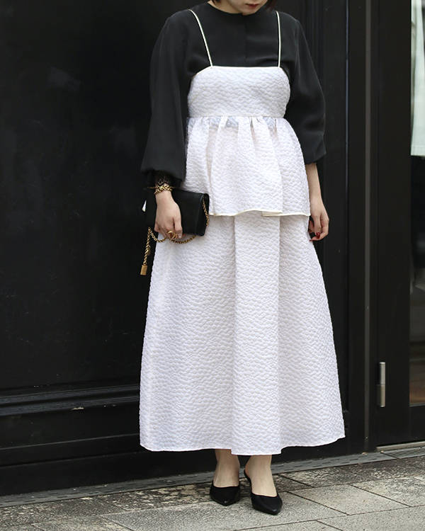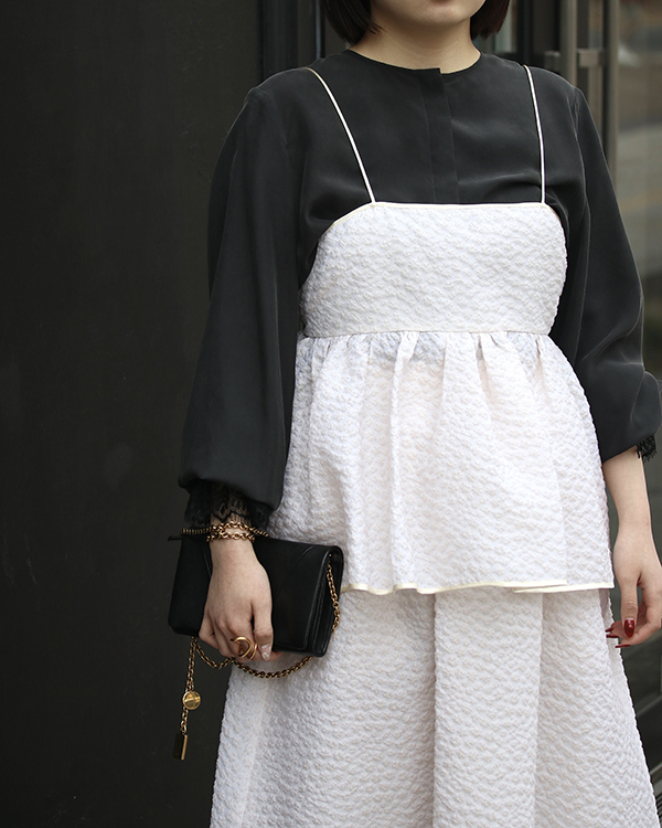 細めなストラップと、ふんわりした女性らしいフェミニンなシルエットが上品です。