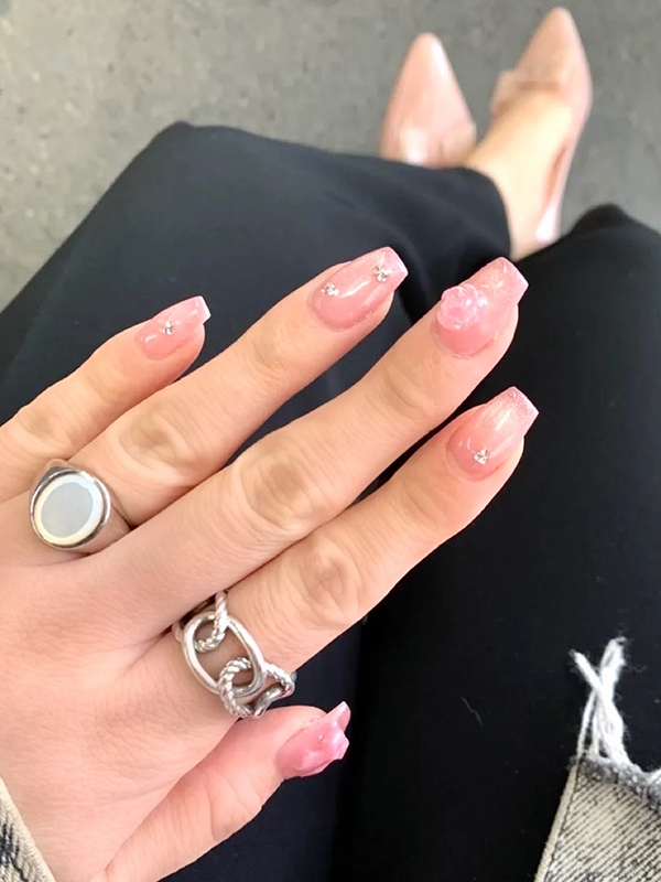 先月ネイルのポイントは春ネイルを意識したピンクネイル。