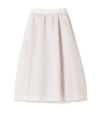 たっぷりとギャザーを寄せたロング丈のフレアシルエットが、歩くたびに優雅に揺れるデザイン。ジャガード特有の適度なハリ感が立体感を生み出し、軽やかさの中に品格を添えます。