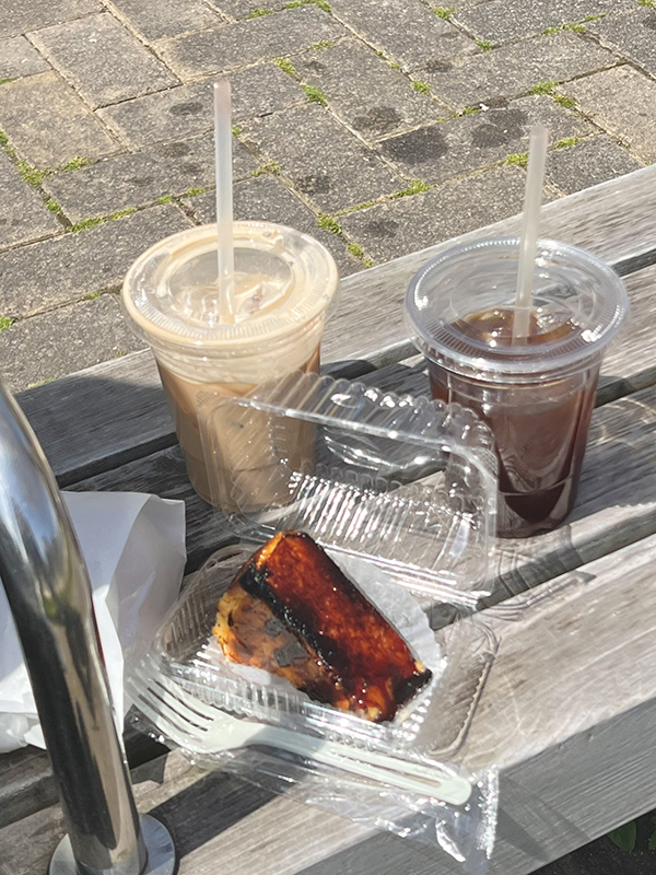 美味しそうなパンがずらりと並ぶ中、私たちの目に止まったのはバスクチーズケーキでした!こちらはなんと、その場で炙りブリュレにしてから頂けるようで、お店の人気商品の一つでした!