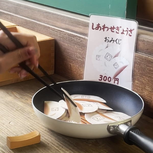 お箸で引く『しあわせぎょうざおみくじ』が有名だそうで、引いてきました♪