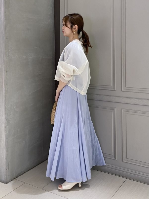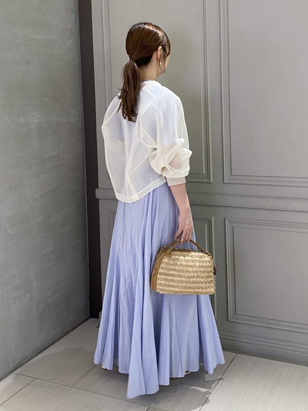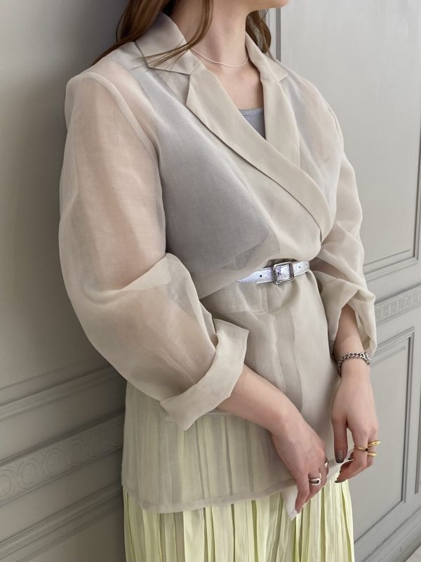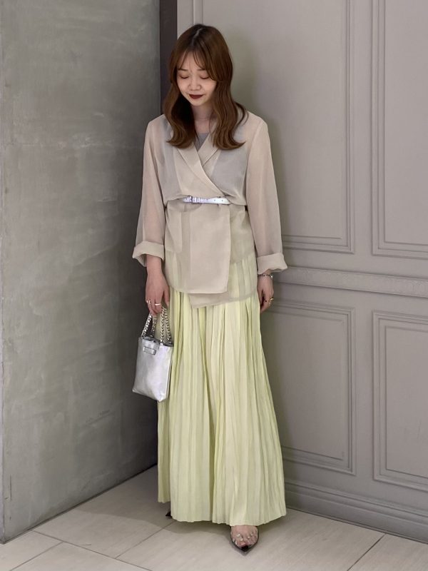 シアー素材とパステルカラーを合わせた≪フェミニンジャケットスタイル≫。