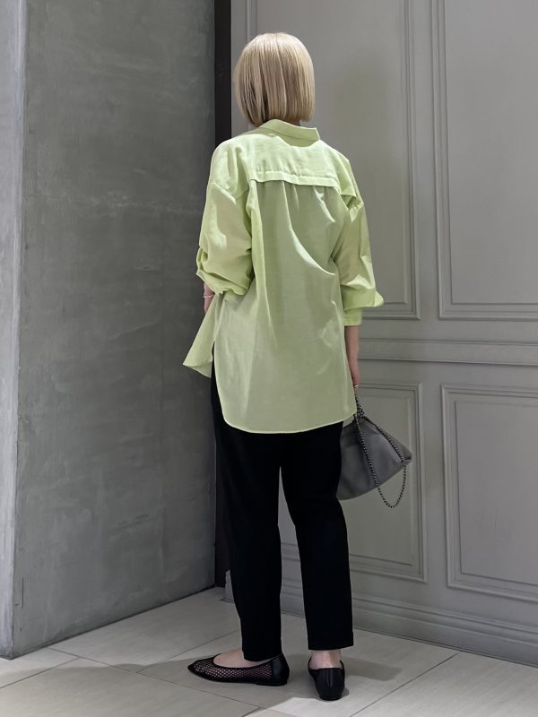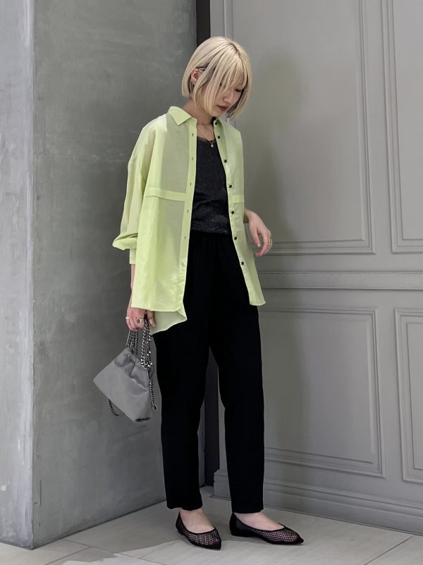 シアーのカラーシャツ×イージーパンツの≪春色ラフスタイル≫。