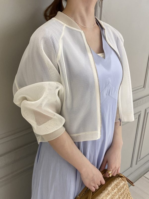 ブルゾンはふんわりと柔らかいメッシュ素材なので、フェミニンなアイテムとも相性◎