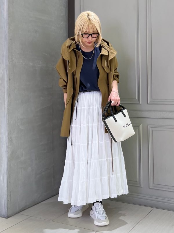 普段パンツ派の方も、コットン地のスカートなら統一感が出て取り入れやすいのでオススメです✨