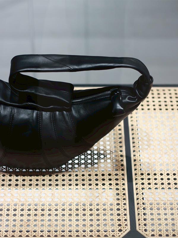 ルメールのワードローブを代表する定番アイテム「スカーフバッグ」は、シルエットの延長線上にあるようにデザインされ、スカーフを思わせるトロンプ・ルイユ効果で衣服を美しく引き立てます。