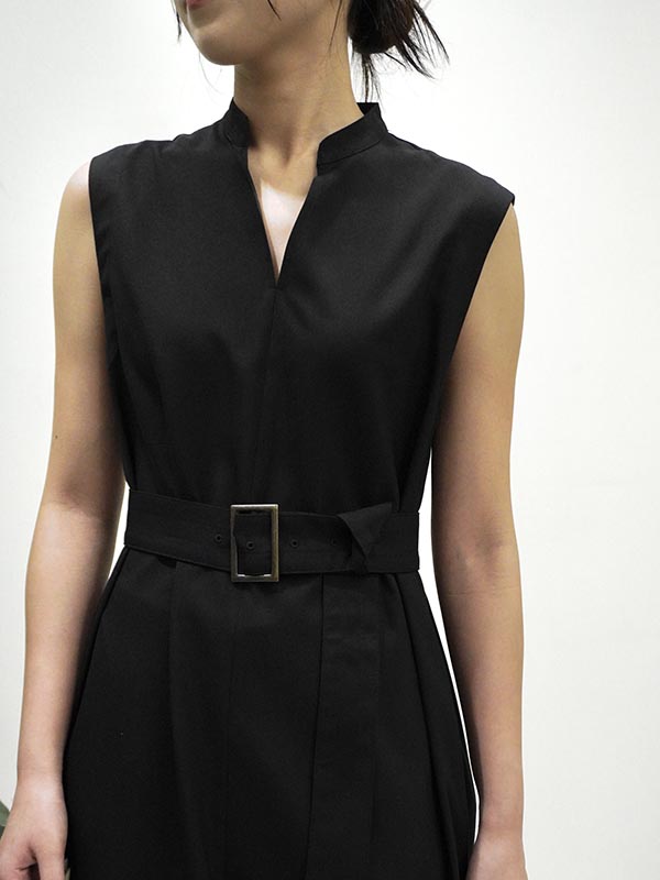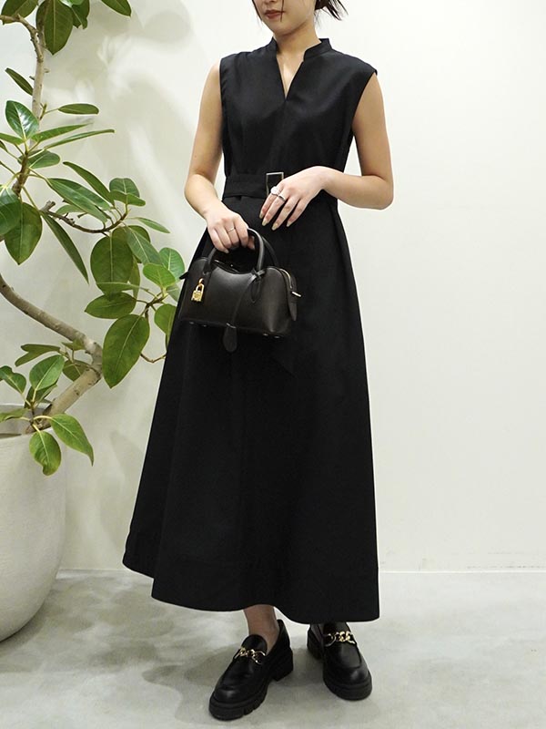 シンプルながらもデザイン性の高いノースリーブワンピース。