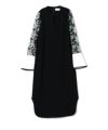身頃全面のレースとパイピングのトリミングにより、メリハリのあるデザインに仕上がっています。キャップスリーブやカーブした裾が腕まわりや体型を美しくカバーし、スタイルアップも叶えます。