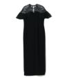 肩にふわっとかかるレースが美しいフェミニンなドレスです。